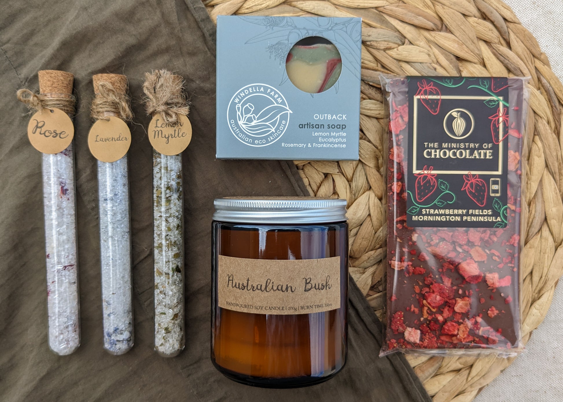 Contents: Epsom salts, Murray River salt flakes, Botanicals, Essential Oil.